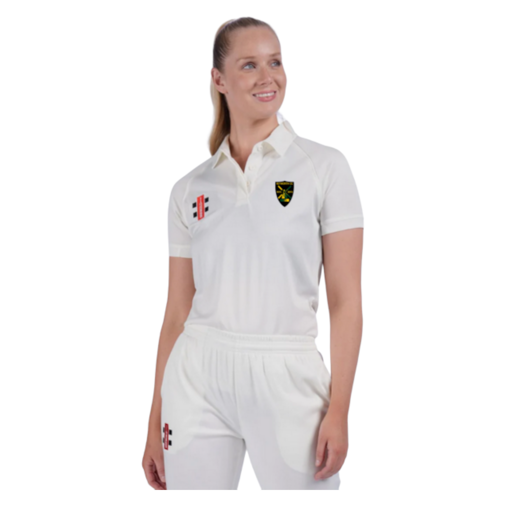 Our Ladies Matrix short sleeve cricket shirt is made of 100% polyester, ensuring it is brilliantly durable and resilient but still lightweight.